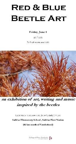 Prince George College of New Caledonia Library May 27- June 10, 2008 Prince George FORREX MPB Conference UNBC Atrium June 10- June 11, 2008 McBride Valley Museum and Archives Reception Friday June 13 7 pm June 13- June 30, 2008 Valemount (Not confirmed) TBA June 30- July 15 ......and hopefully more locations & dates TBA... TO SEE PICTURES FROM THE SHOWS ON THE BEETLEART BLOGSPOT CLICK HERE |
